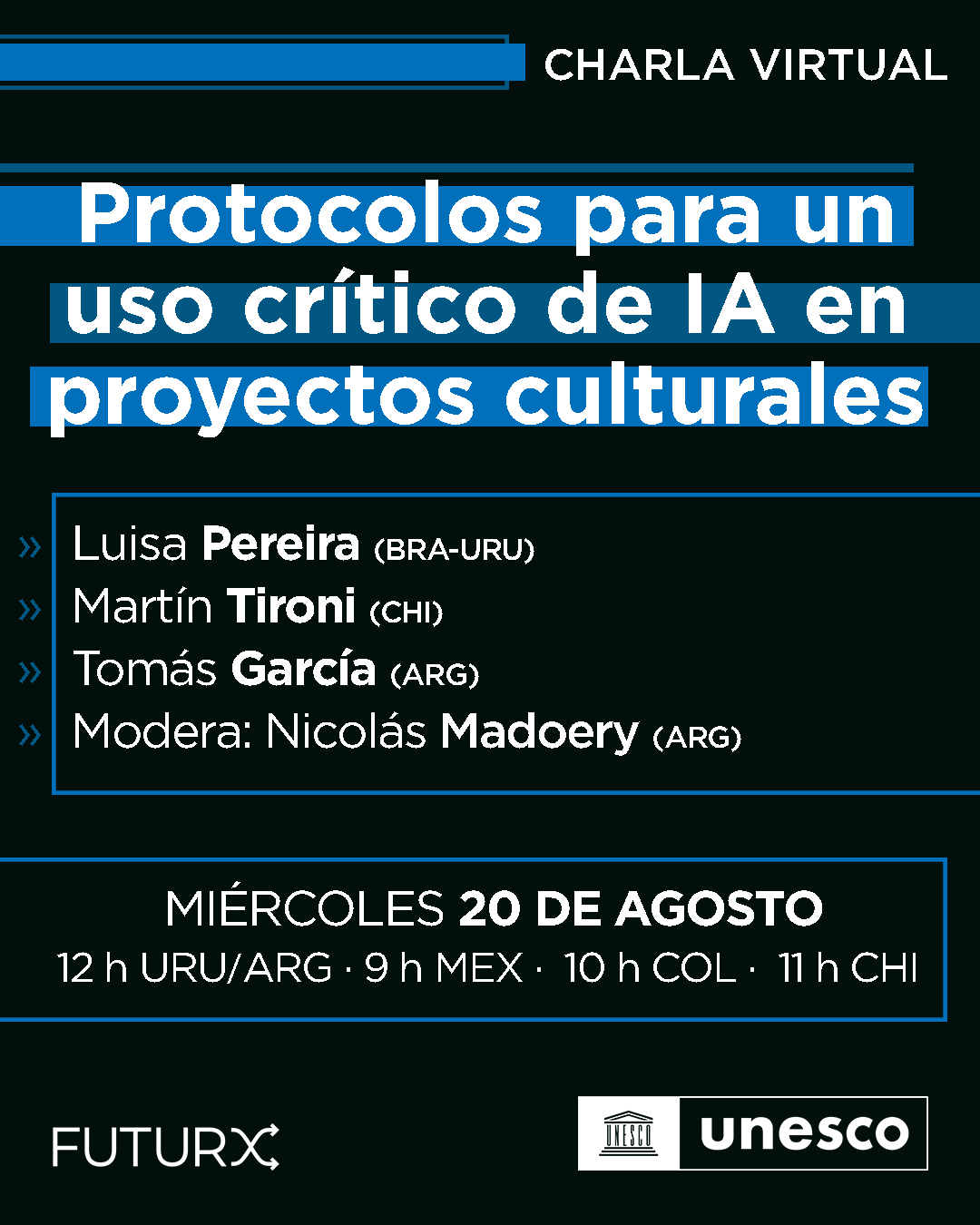 Por eso, es un honor y una responsabilidad que UNESCO Montevideo me invite a curar un espacio para abrir este debate. En lo personal y con FUTURX queremos seguir poniendo sobre la mesa este tema y todas sus capas, que cruzan lo técnico, lo ético, lo creativo y lo político. Queremos abordarlo con la profundidad que merece: lejos del hype y con la mirada puesta en cómo estas decisiones impactan en nuestras organizaciones y en las comunidades con las que trabajamos.
